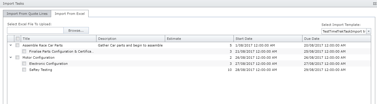 Back in the Import Task screen instead of Importing from quote lines users can import from Excel by clicking the “Import From Excel” tab as per below: