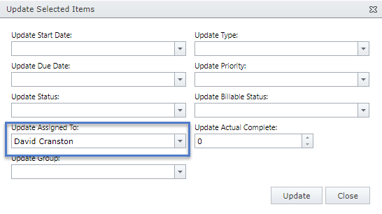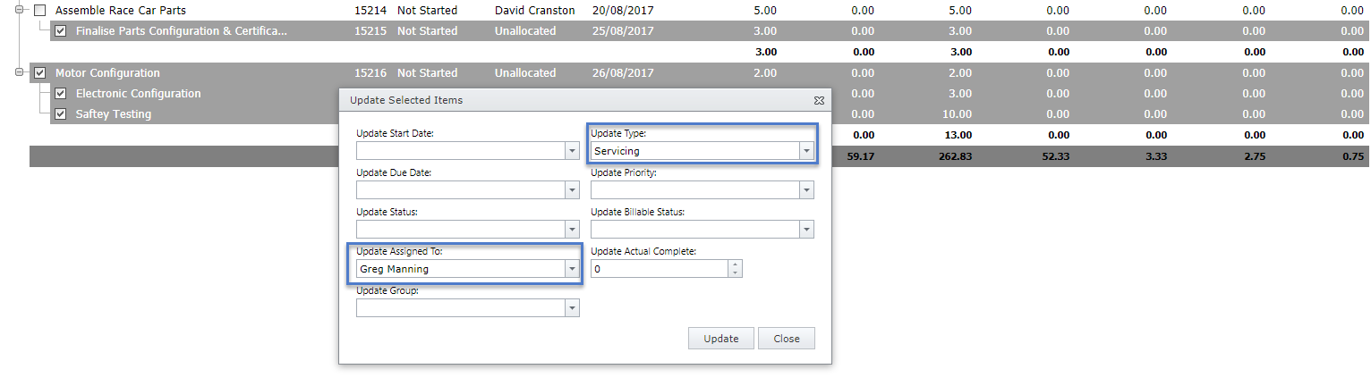 From here you can select one or multiple tasks and right click “Update Selected Items”.