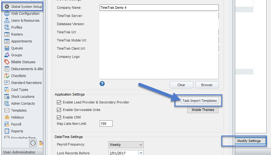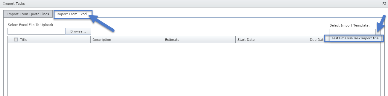 Users then need to select an import template (these are the templates set in the TimeTrak Administrator Console)