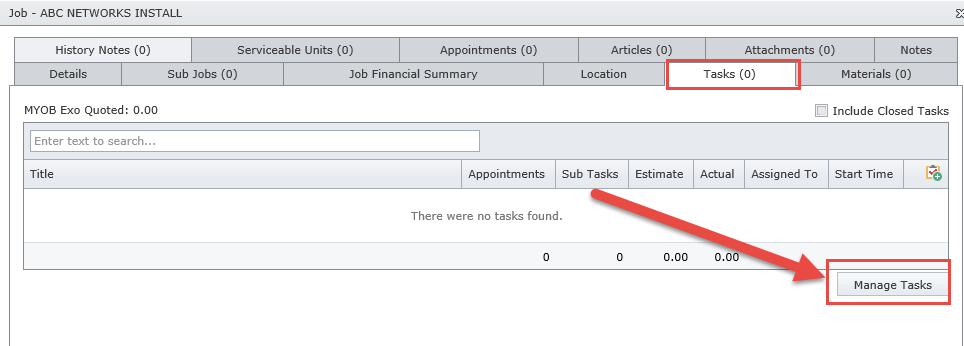 Save the Job then click the Tasks tab and ‘Manage Tasks’ as per below: