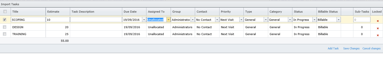 This will bring through the ‘Quote lines’ from the Job template users can then edit the Task details as required.