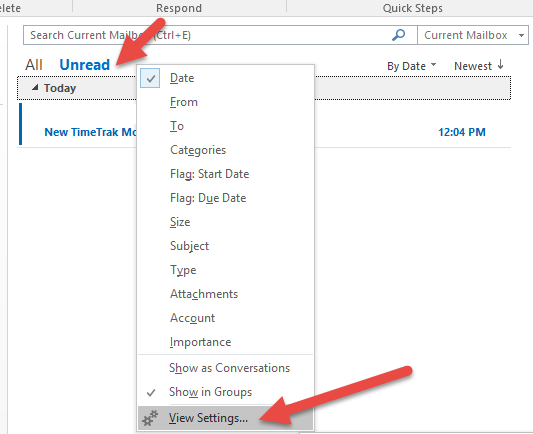 In the shared mailbox, right click on the header, and select “View Settings” as per below: