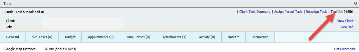 In Outlook as per below there is now the task ID displaying – in the below example 91656