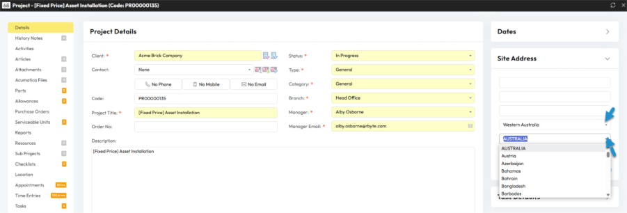 In this release, MYOB Acumatica clients now have State and Country address fields as dropdowns against Client, Project and Contact’s within TimeTrak aligning with MYOB Acumatica and improving address integration between platforms.