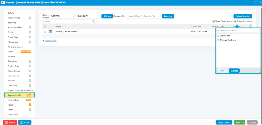 This release introduces the ability to filter appointments by column values within the appointment grids. Users can quickly narrow down records based on specific criteria, making it easier to find, review, and manage appointments.