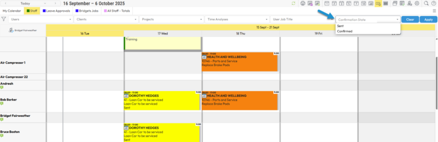 Appointment confirmation states can be displayed via profile customisations, as illustrated in the example below: