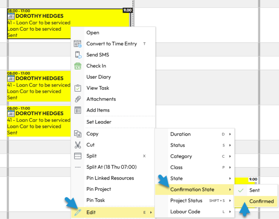 When an SMS is generated from a scheduled event with “Enable Replies to Confirm Appointments” activated, the appointment’s confirmation state will automatically update to “sent.”