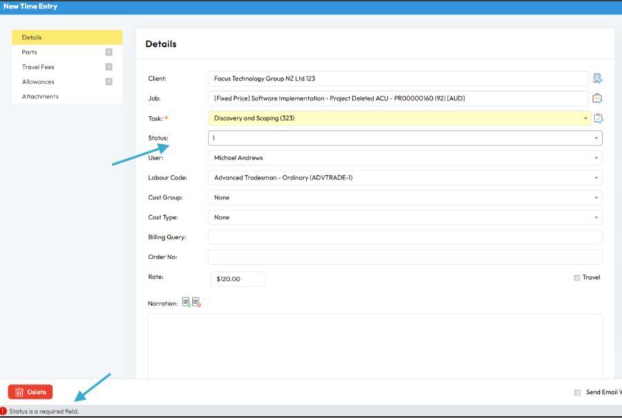 All time entries must be recorded against a Task