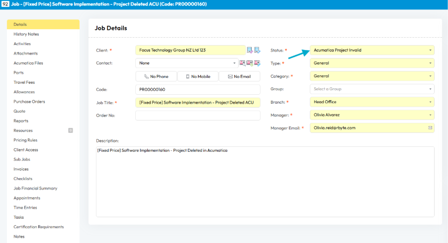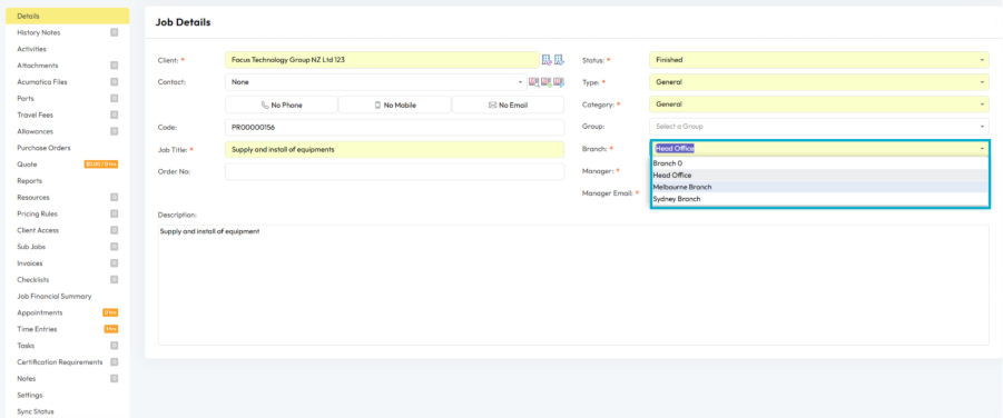 This enhancement provides greater flexibility in controlling which job‑related fields are visible to users, particularly for MYOB Acumatica clients where Project Type and Project Category may not be applicable.