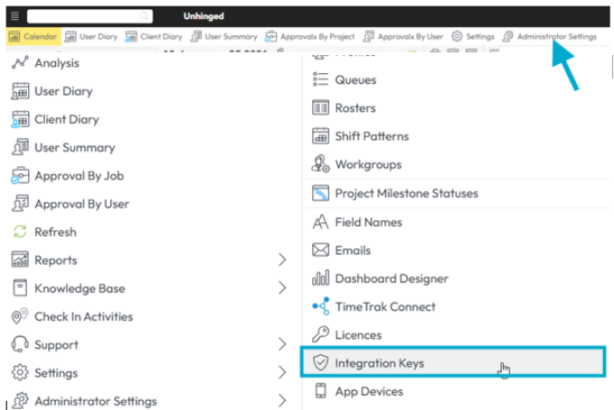 These settings are now available to Global Administrators and can be accessed via the main TimeTrak Professional menu: