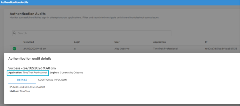 From this release, all login attempts—both successful and failed—are logged and can be accessed by Global Administrators directly within TimeTrak Professional.