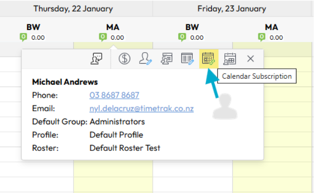 From this release, the Calendar Subscription link is now more easily accessible. Where a user has the appropriate permissions, the subscription link will appear directly within the user tooltip popup when clicking on a user’s name in the TimeTrak calendar.