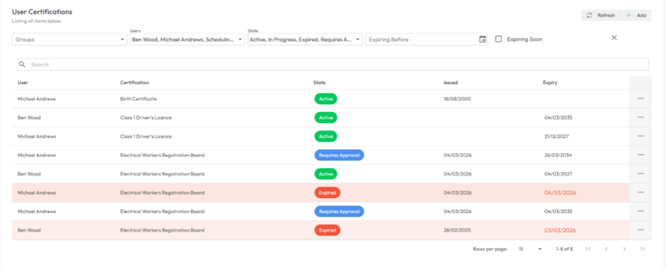 These proactive notifications help ensure certifications remain current and compliant across the organisation.