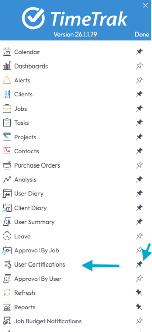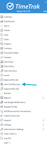 Managing User Certification in TimeTrak Professional: Accessing User Certifications