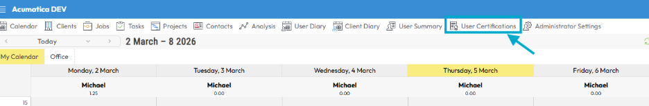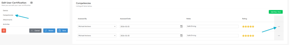 This method gives you one‑click access to the User Certifications screen, making it easy to view and manage competencies at any time.