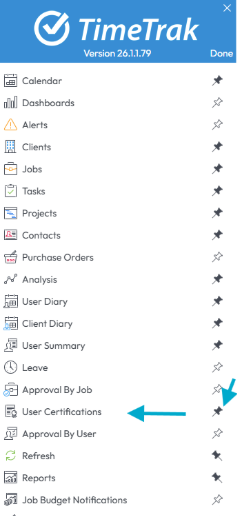 Alternative Quick Method to Manage Certifications in the TimeTrak App
