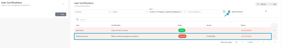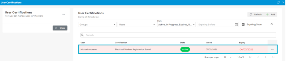 This automatic status update helps maintain accurate, reliable certification histories while ensuring the system shows only up‑to‑date active licences.