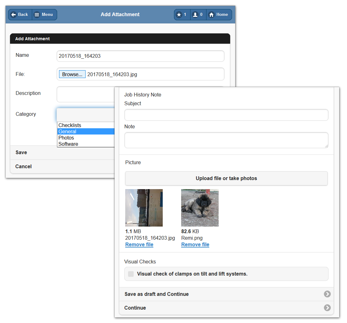 TimeTrak allows you to add any kind of attachment from the Job Details screen. Simply select attachments, then browse for a file, select the category and save it to the job.
