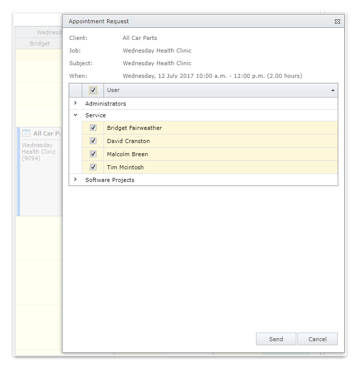 This will then send out an email to all possible fill-ins to accept the appointment. Once this appointment has been accepted, the appointment automatically gets added to that person's calendar and they are now in the roster group.